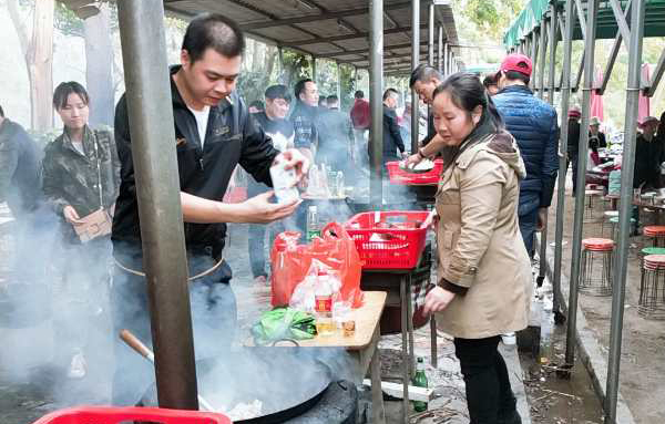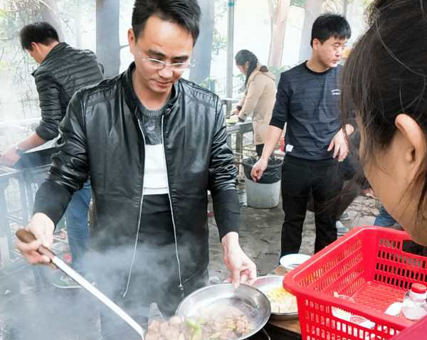集體野炊,炊事班班長、伙夫,分工協(xié)作、場面熱火朝天。