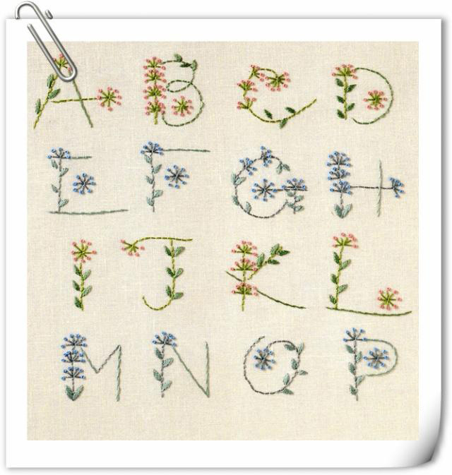 好多小伙伴都喜歡字母繡,上圖中的字母繡,雖然簡單,但是因為有了小花草的點綴,就不那么單薄、