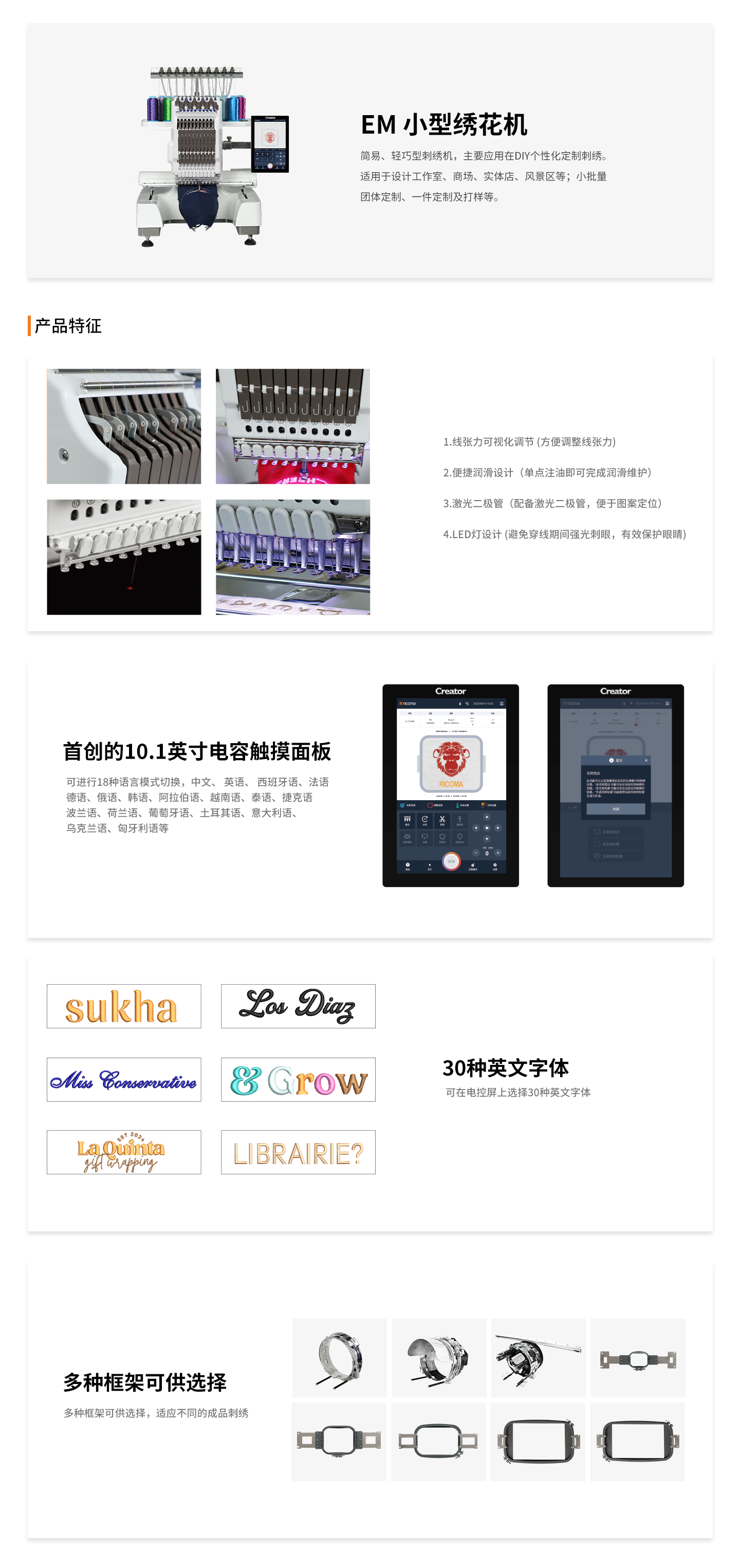 ▼ 單頭10針機器,最大滿足客戶刺繡需求;